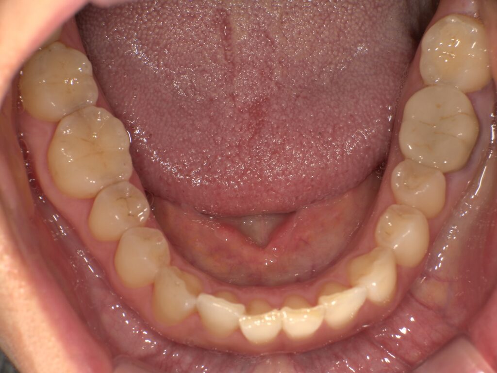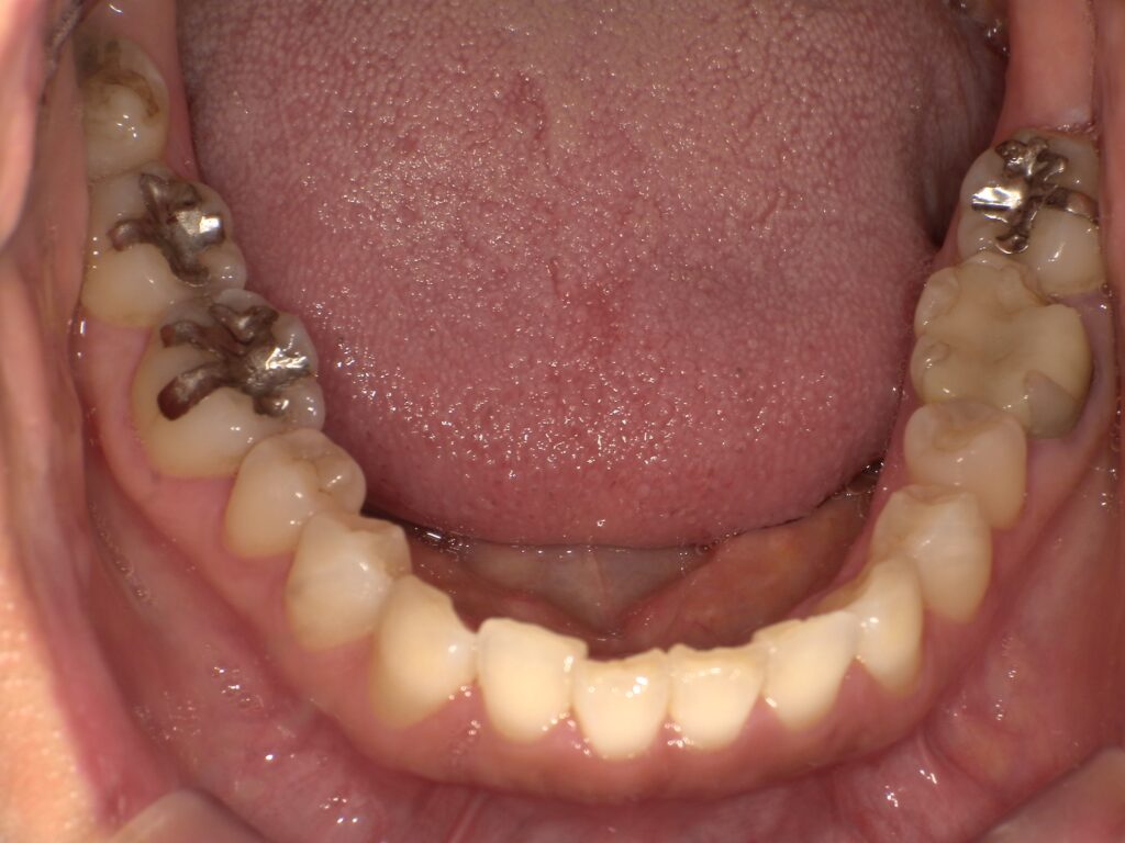治療後、審美面にご満足いただき、「他の金属の部分もセラミックに変えたい」とのご希望があったため、順次やり替えていくことになりました。まずは、お口を開けた際に目立ちやすい下顎から治療を進めています。