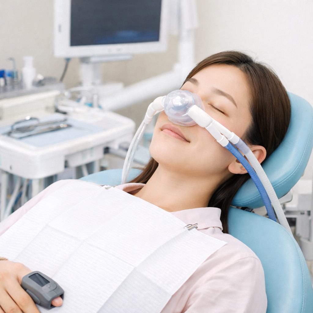 歯科恐怖症の方に用いられることの多い笑気麻酔を使用した歯周治療もご提案しましたが、患者様からは「笑気麻酔は使用せずに治療を受けたい」とのご希望がありました。そのため、鼻元に水がかからないようタオルで覆う範囲を広くするなどの工夫を行いました。
