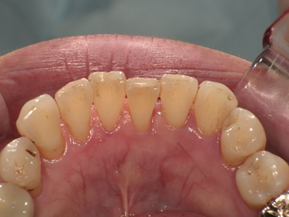 転院を希望されて来院された患者様は、下顎前歯を中心に歯石や汚れが多く付着しており、歯ぐきに軽度の炎症や、一部に歯周ポケットが深い部分がみられる歯周炎の状態でした。